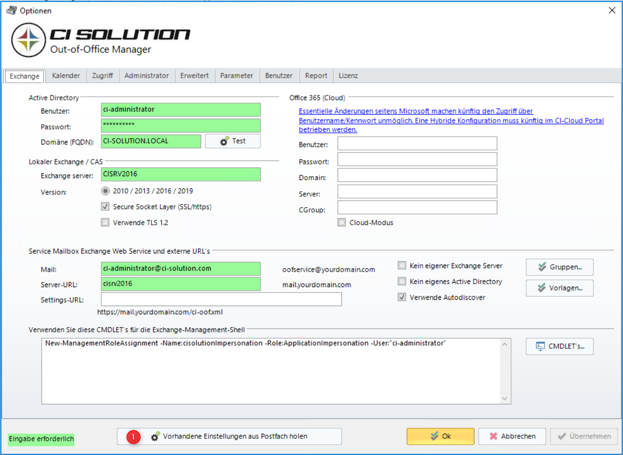 Starten Sie den CI-Out-of-Office Manger mit ci-oof.exe /config
