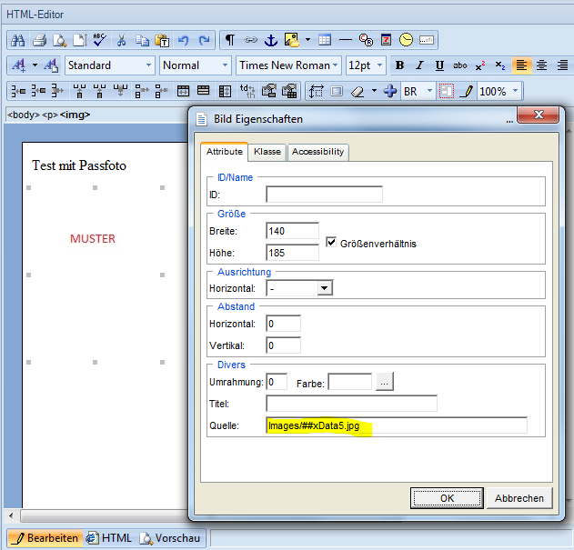 Fügen Sie die Grafik ein (##xData5.jpg). Wenn nun beim Benutzer keine Grafik hinterlegt ist (xData5 ist leer) dann wird die Grafik automatisch gelöscht.